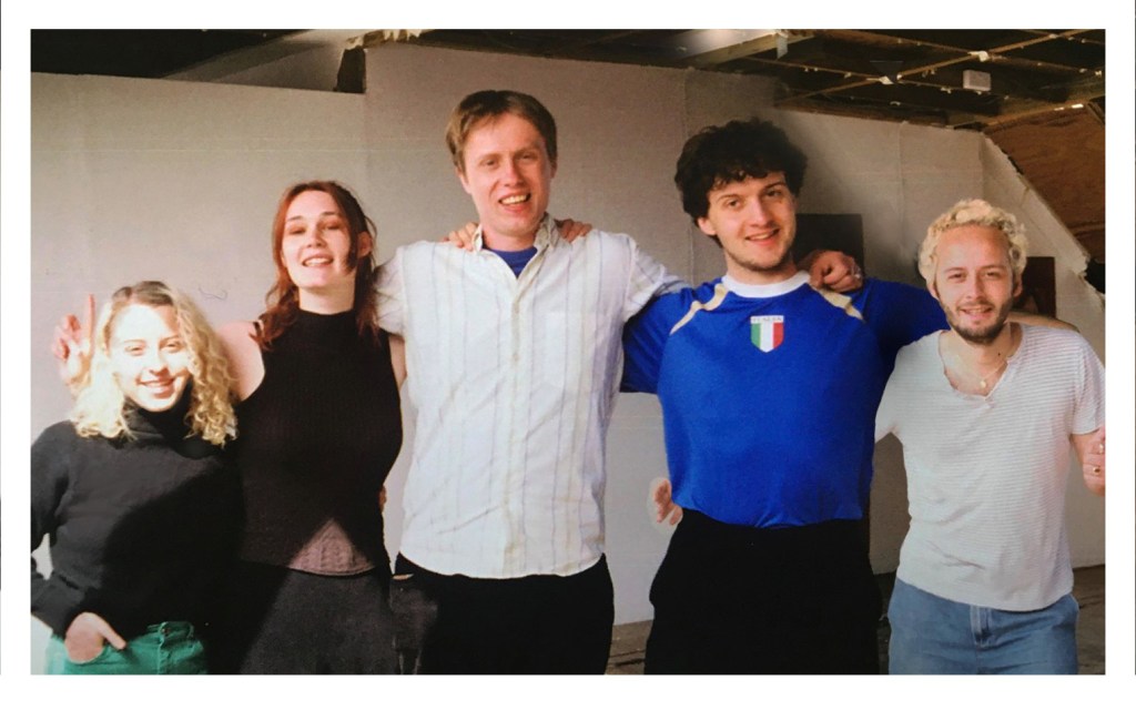 Having completed a stint at the Glasgow School of Art, in the Summer of 2019 flatmates Max Lunn and Becky Sparks went searching for fresh inspiration. Inspired by, “singing to each other about their day in the vein of the Pastels and workshopping impersonation of Frank Black”, the duo decided to form Dinner Night. Now two years on and expanded to their current five-piece lineup, Dinner Night are set to release their debut single, Reporter In The Wind, the video for which is premiering here today.